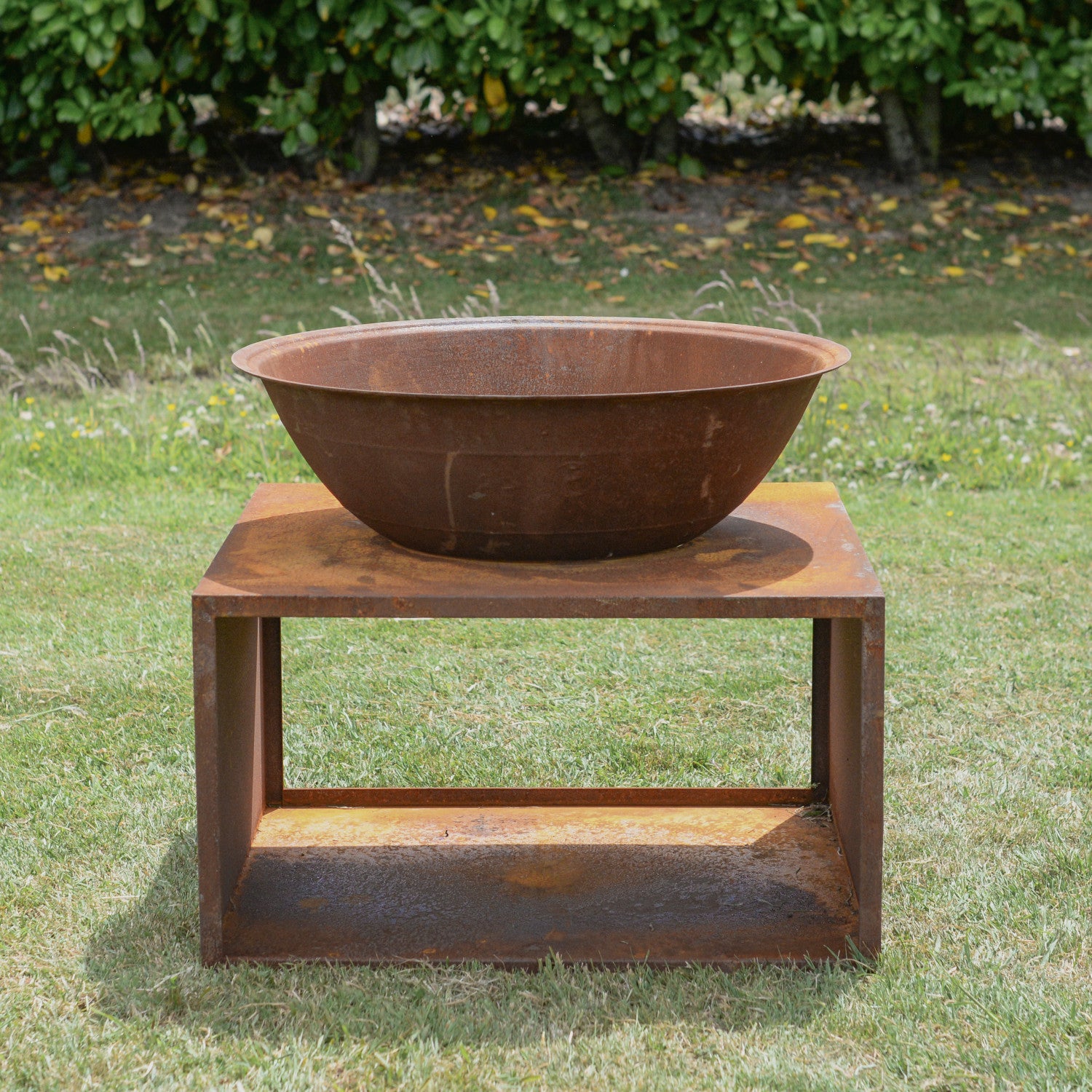 Rustic Fire Bowl & Wood Store - 72cm Diameter